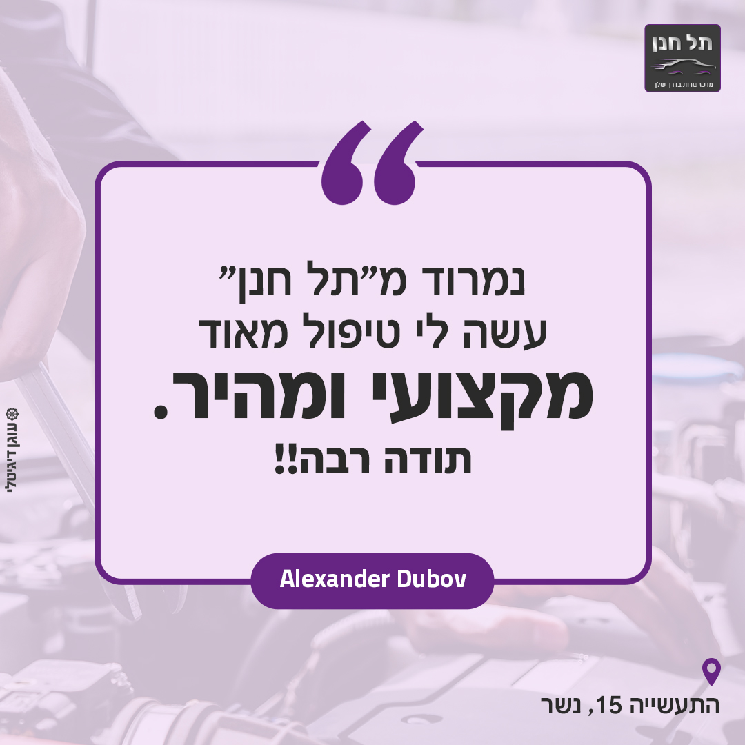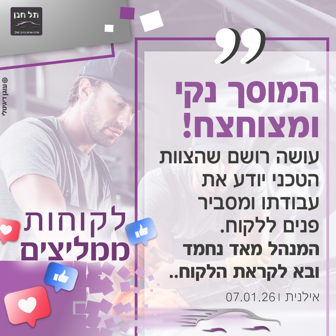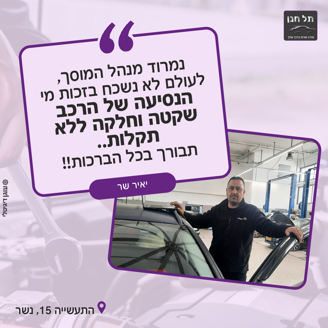 ״הגענו למוסך תל חנן מעיין ודריה קיבלו אותנו, היו אדיבות נעימות ואחראיות, ממליצים בחום״
